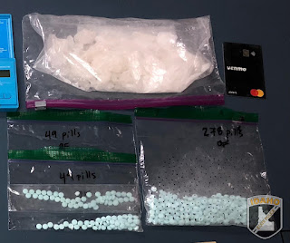During the investigation, the Trooper received consent to search the driver's backpack. Inside the pack, the driver was found to be in possession of a plastic baggie with a white substance identified as methamphetamine with a total weight of approximately 6.4 ounces, a variety of marijuana products including items packaged for delivery, a scale, drug paraphernalia, and a large amount of cash. The driver was also found to be in possession of more than 370 pills identified as fentanyl.