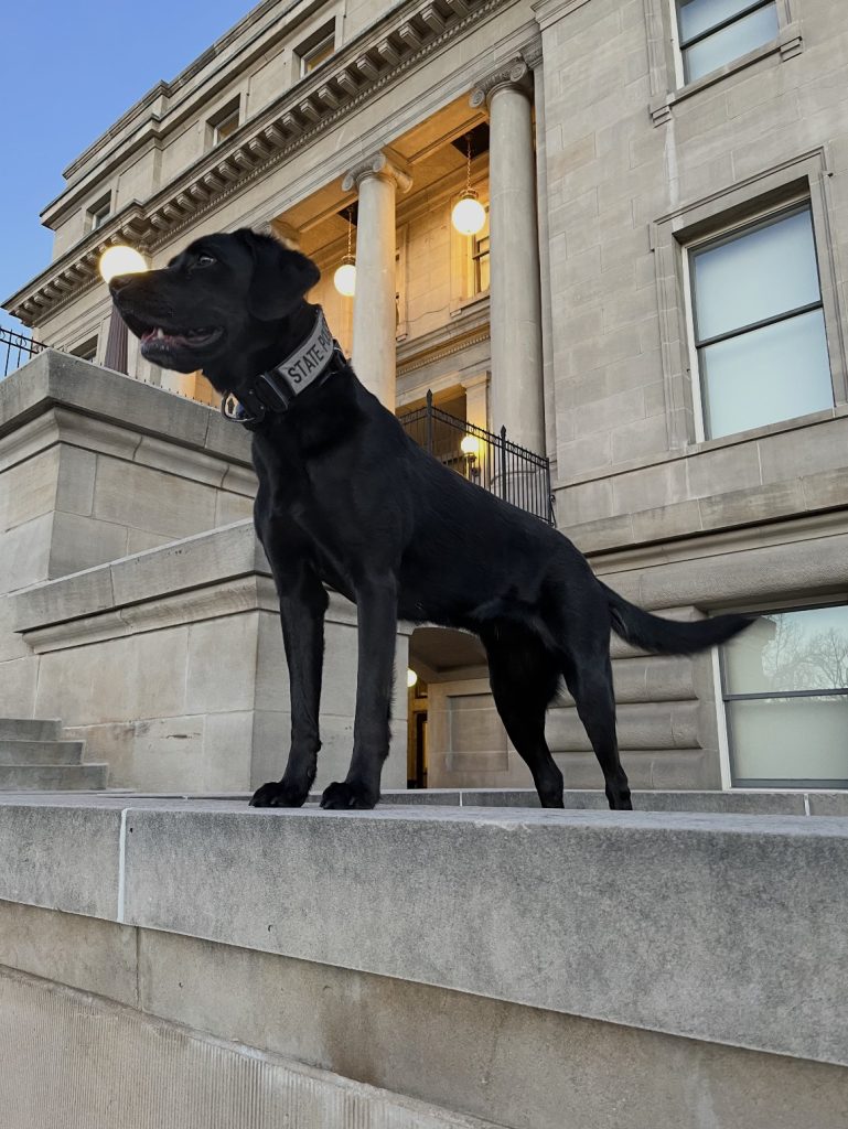 Since joining the explosive detection K-9 program in 2022, Kimber has supported security operations at the Idaho State Capitol during legislative sessions, protests and public events, as well as at state facilities throughout the Boise area.
