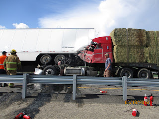 A 2007 Peterbilt semi hauling hay, driven by Efrain Orozco Gil, 43, of Eden.