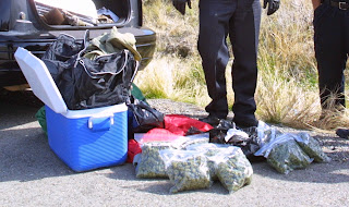 During the traffic stop, troopers detected the odor of marijuana and called for a drug detection K-9 that was working with the troopers from the Weiser Police Department. The K-9 subsequently alerted to the car. Troopers located a cooler concealed under sleeping bags in the trunk of the automobile. The cooler contained eight gallon-sized bags with approximately a half pound of marijuana in each. Rinard was arrested for Felony Drug Trafficking and Misdemeanor Possession of Drug Paraphernalia and booked into the Owyhee County Jail. The total weight of seized marijuana was approximately 4 pounds with an estimated value of $8,000.00.