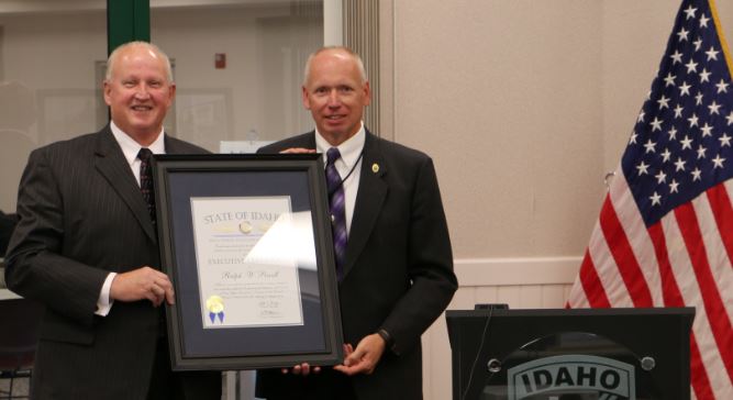 MERIDIAN – Today Idaho Peace Officer Standards & Training Council Chair, Meridian Police Chief Jeff Lavey, presented Colonel Ralph W. Powell the POST Executive Certificate, the highest certificate awarded to peace officers in this state.