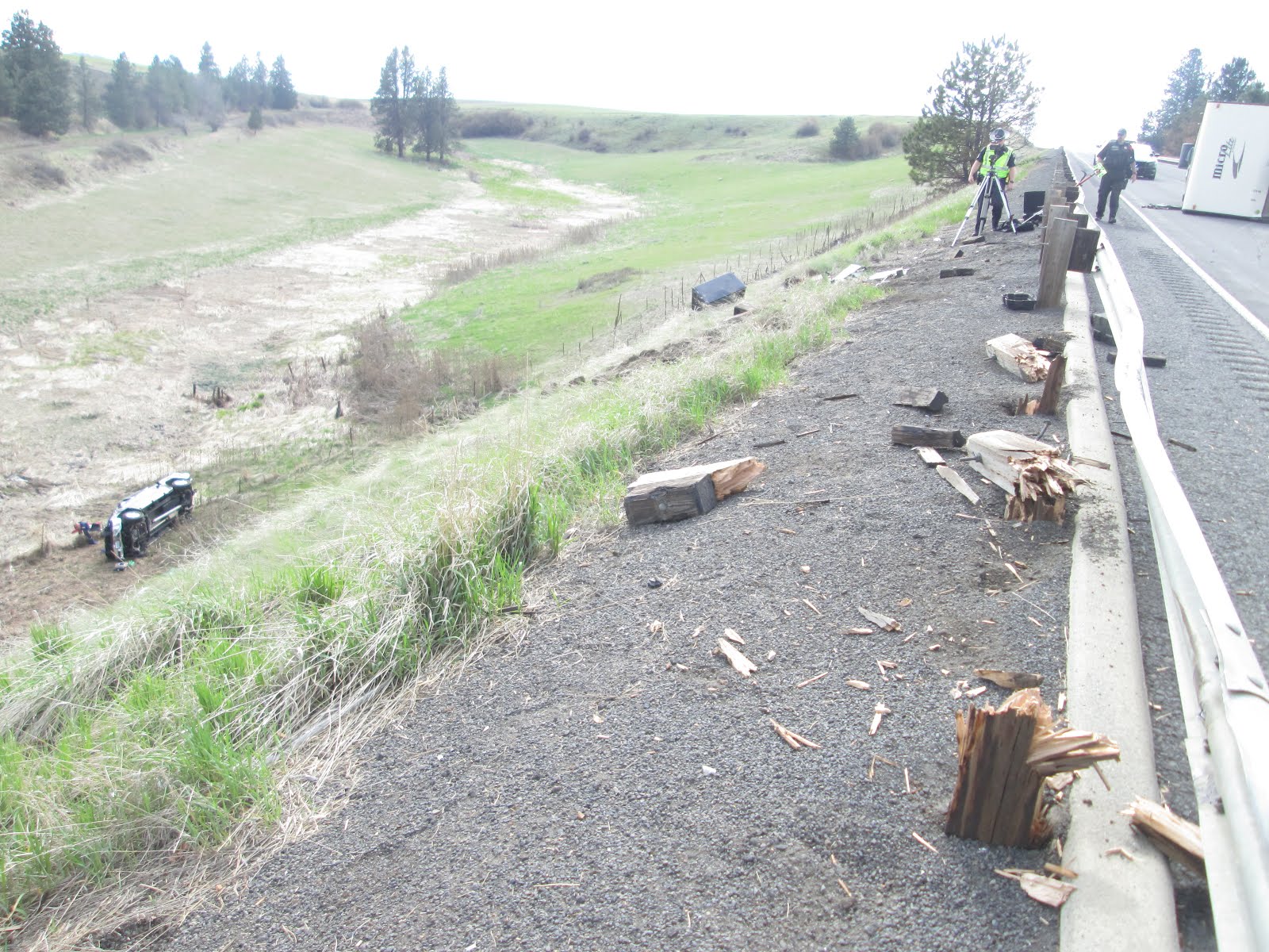 On May 2, 2018 at approximately 2:52 p.m. an injury crash occurred on US95 at milepost 275, two miles north of Craigmont, ID. A brown 2016 Ram 1500 pickup pulling a 2016 Flagstaff camper trailer driven by Susan N Thompson, 70, of Greenacres, WA was traveling northbound when the camper trailer began to fish-tail. Susan Thompson swerved into oncoming traffic, the camper trailer became detached from the pickup and overturned on US95 blocking traffic. The pickup struck the guardrail and continued down a 100 foot embankment. Susan Thompson as well as the passenger, John M. Thompson, 75, of Greenacres, WA were wearing their seatbelts and were transported to St. Mary's Hospital in Cottonwood, ID. US95 was restricted to one lane for just under four hours during the vehicle recovery. The crash is still under investigation.