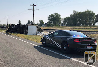 A box truck hauling a load of chairs ran off the road causing the truck to overturn. The rollover caused the chairs to scatter off the side of the roadway. Troopers on scene were told the chairs were intended for delivery to the Eastern Idaho Fair.