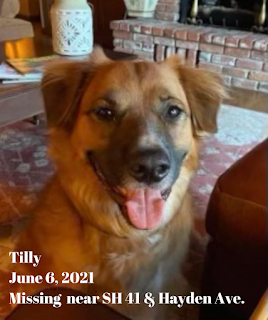 Additionally, ISP is asking anyone in the area of SH 41 and Hayden Avenue to be on the lookout for a dog who was ejected from the rear of the GMC as a result of the collision. The dog is a 2- year-old Border Collie Heeler mix that goes by the name "Tilly". Tilly has no tail, a dark-colored face, weighs approximately 70 pounds, and was wearing a multi-colored plaid and tan-colored collar with a name tag containing the owner's contact information.